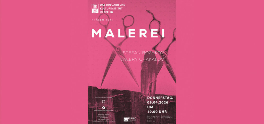 09. April 2026 19 Uhr | Bulgarisches Kulturinstitut Leipziger Straße 114-115, 10117 Berlin | Eintritt: frei Die stilvolle Ausstellung, die am 9. April 2026 im BKI-Berlin eröffnet wird, präsentiert Werke von zwei prominenten bulgarischen Künstlern: Stefan Bozhkov und Valery Chakalov. Was sie eint, ist die Tatsache, dass sie beide Meister der Grafik sind und gleichzeitig… - Theatervorstellung „Pianissimo“